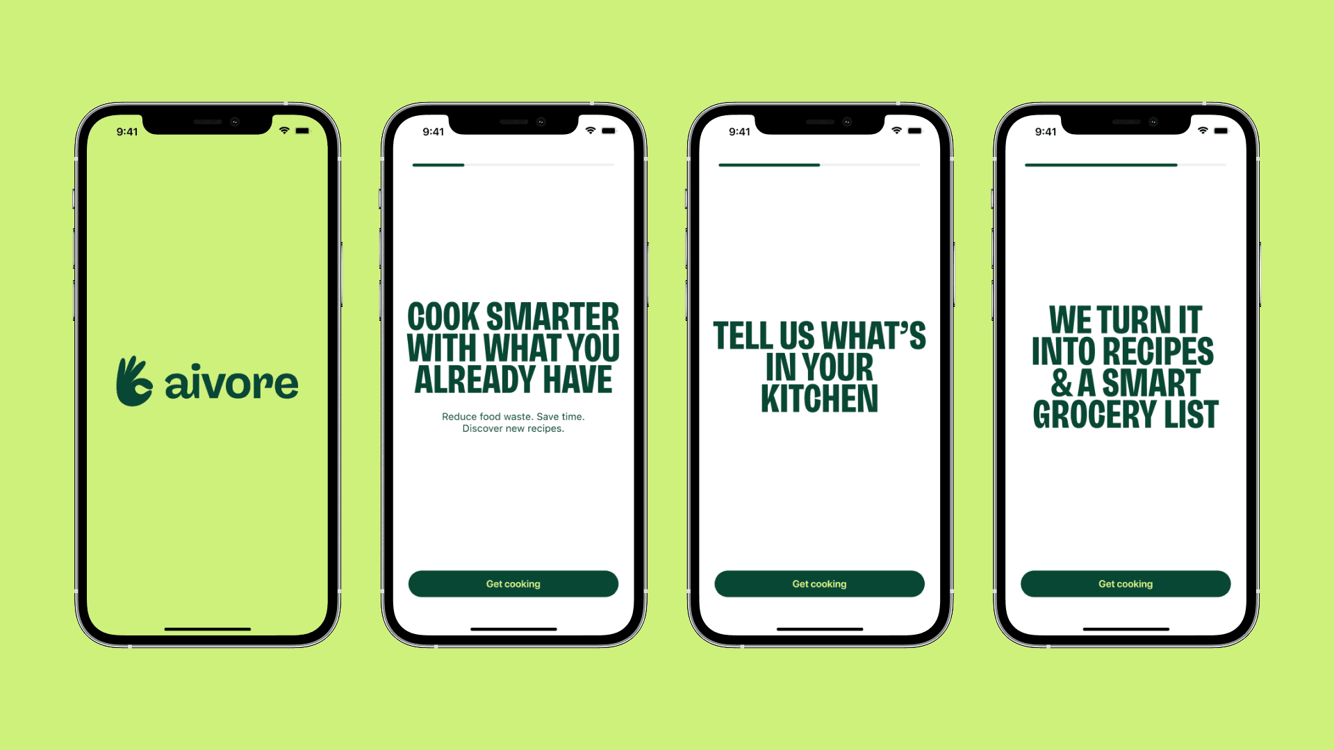 A feature walkthrough front-loads information the user hasn't asked for yet. A single screen doesn't give enough context for an app that works differently from a typical recipe app. Three screens build the proposition step by step: here's the problem, here's what you do, here's what you get.